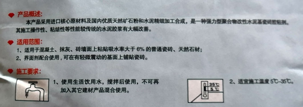由于氣候、施工方法等因素存在差異,在施工前或使用前首先要進行效果測試,達到預期效果才能廣泛使用,產(chǎn)品使用后的效果因基層不同而定。本公司不承擔由于不正確使用引起的任何損失的責任。施工請按照產(chǎn)品說明的指示進行,有關問題請咨詢當?shù)亟?jīng)銷商或本公司技術服務。